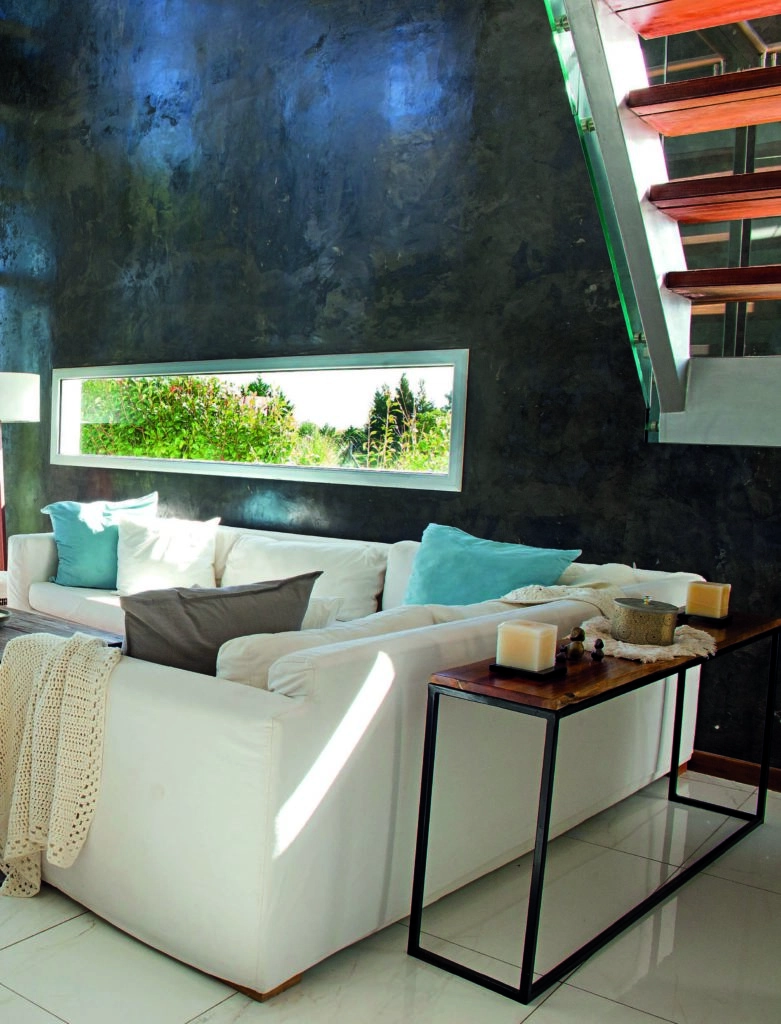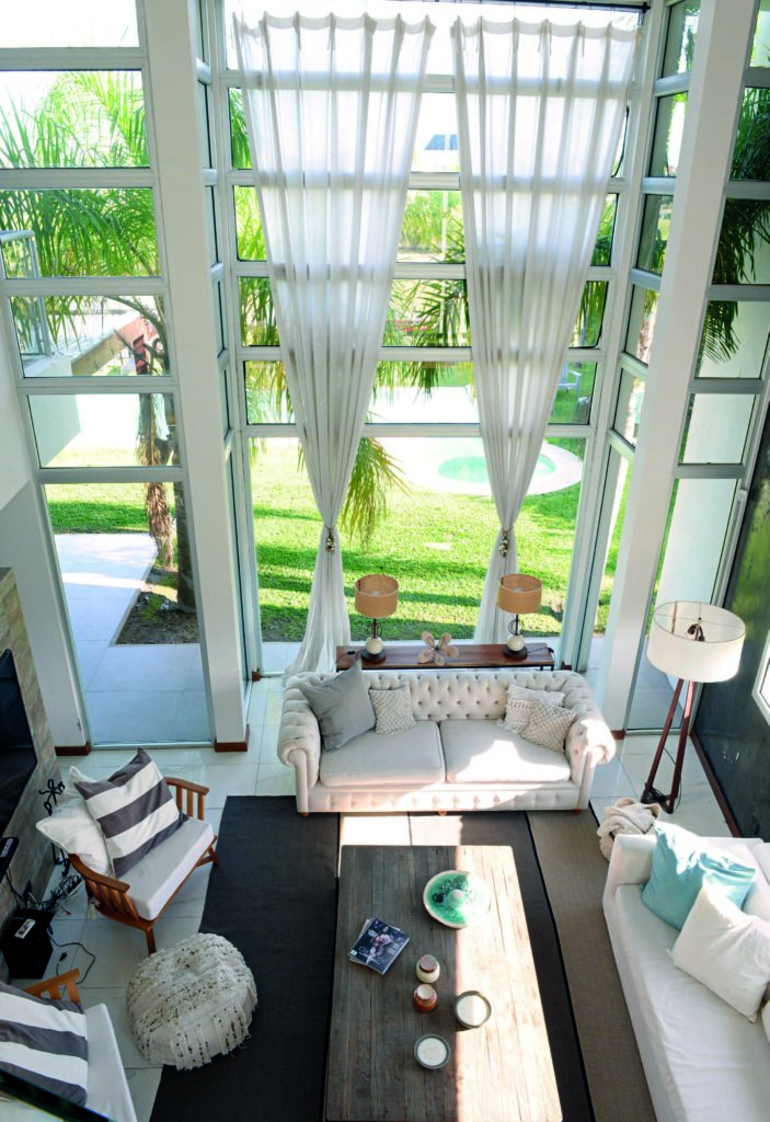 El primer pantallazo desde el interior de la casa tiene como protagonista absoluto al tremendo ventanal de doble altura con vista al río, dueño de todas las miradas.