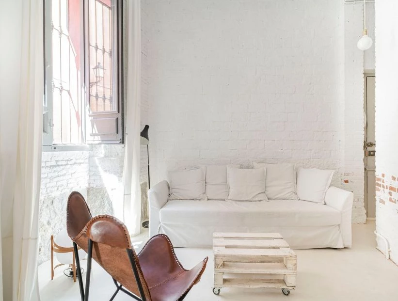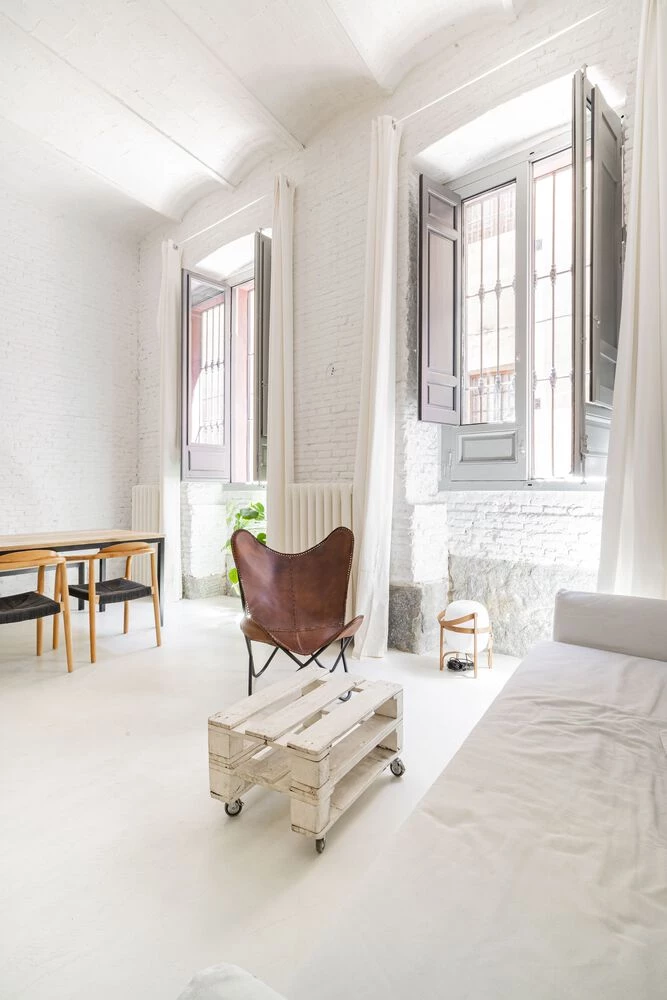 La casa de 70 m2 mantiene la altura libre original de 4 metros en toda su superficie, dándole un carácter único.