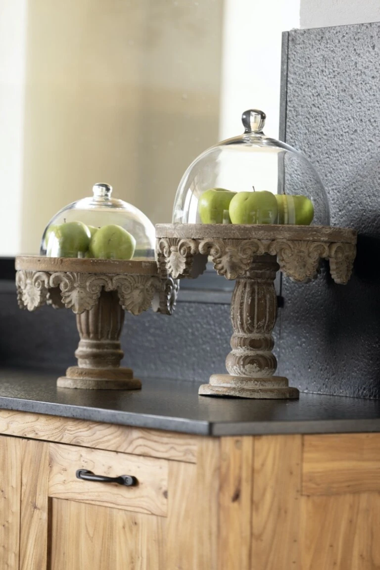 La madera de castaño es protagonista, presente sobre la profusión de muebles bajomesada y la línea de vajilleros.