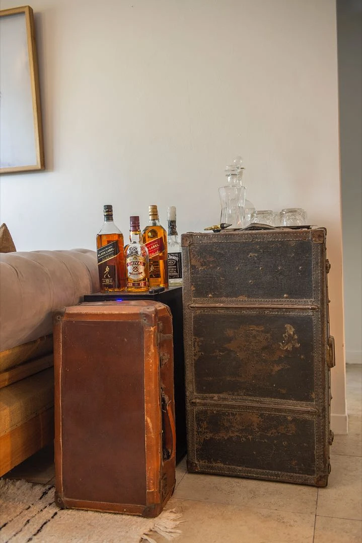 El espacio suma baúles que su abuela trajo de Italia como mesas de apoyo, un locker de hierro negro restaurado que llegó desde una fábrica abandonada y hoy cumple el rol de vajillero y una lámpara de pie estilo cine (@cinderelladecoracion).