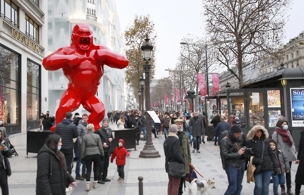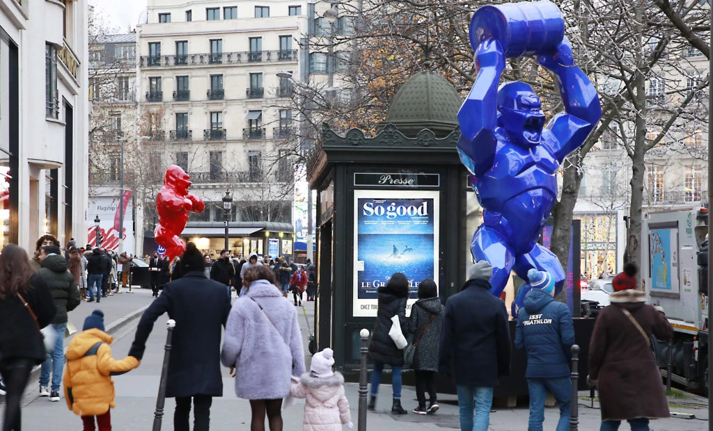En esta oportunidad, sus piezas emblemáticas realizadas con materiales industriales como la resina, el aluminio, la cerámica, la piedra y el bronce, se lucen en las calles de Paris, más precisamente en la Avenue George V y los Campos Elíseos.