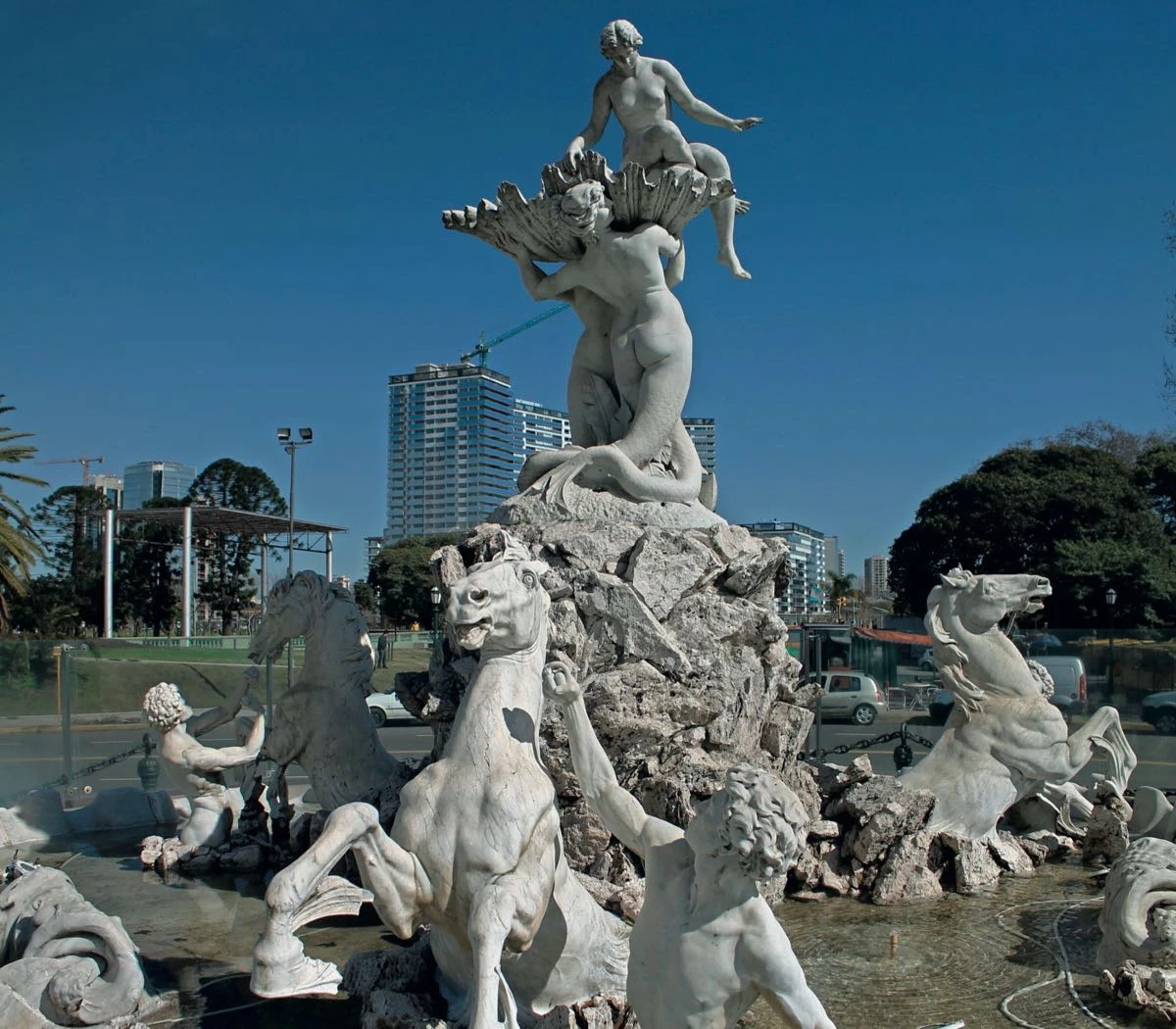 El Baño inspirado en la obra de Lola Mora. ¿Qué pasaría si interviniéramos un baño con el lujo y la innovación de un spa 5 estrellas inspirado en la emblemática primera escultora argentina? La Fuente de las Nereidas, sus seres mitológicos ¡y Venus!.. de la Costanera Sur al espacio más íntimo de la casa. Mármol de Carrara y piedra conviviendo con diseño y grifería de vanguardia y última generación, en un baño único, barroco, femenino y singular.