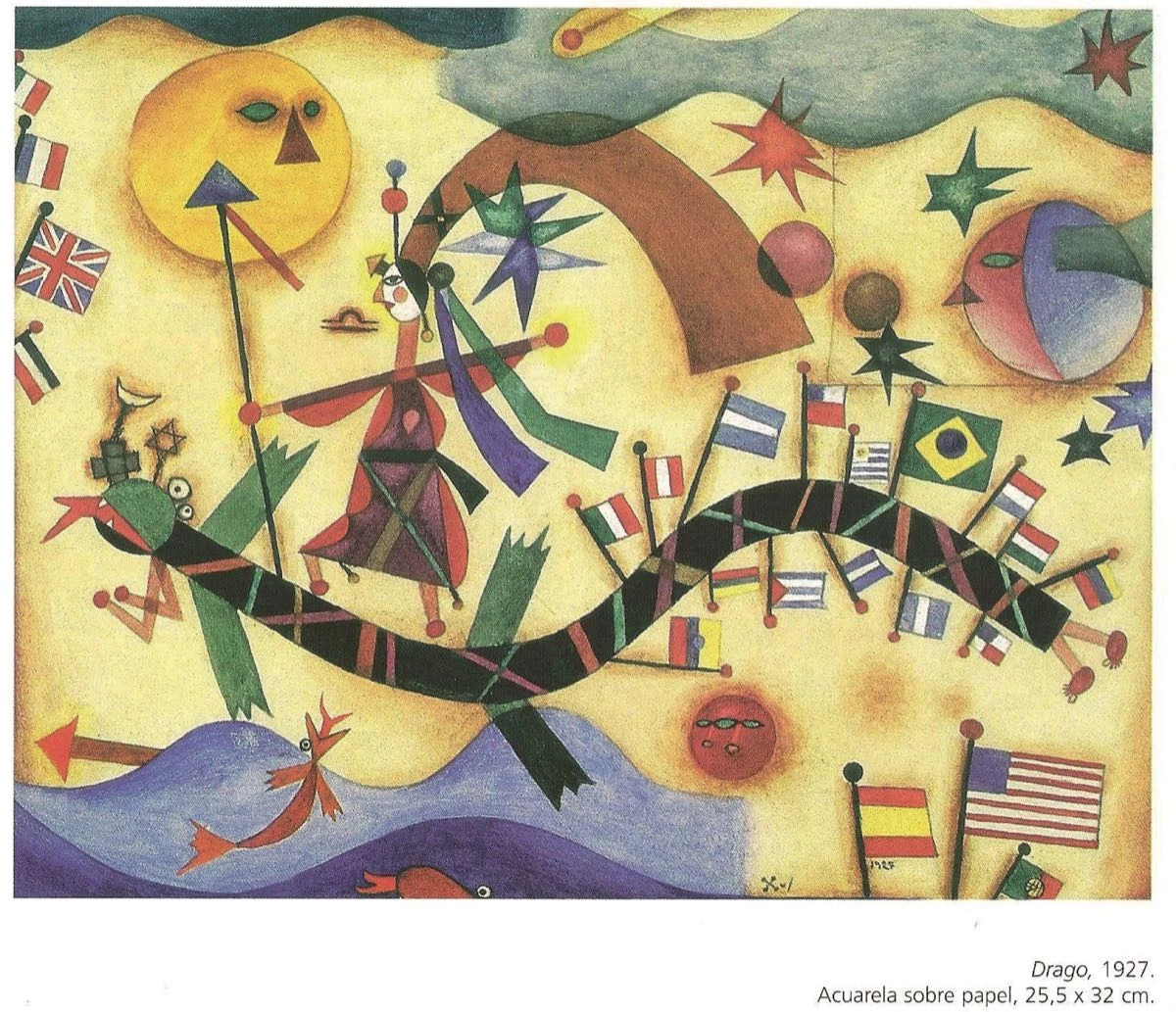 El Living inspirado en la obra de Xul Solar. Un espacio social, de relax íntimo y punto de encuentro del hogar, se eleva a un siguiente nivel a través del universo artístico/metafísico del artista, colmado de símbolos que expresan una búsqueda espiritual. Un ambiente doméstico bajo una visión fantástica, inspirada en el cubismo, surrealismo, expresionismo. Y todo en colores con la técnica acuarela.