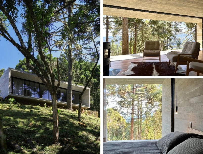 El resultado es una construcción que se fusiona con el paisaje como una roca que surgió del suelo natural y fue tallada por el hombre. La textura del hormigón lleva las marcas de su encofrado, remitiendo, al mismo tiempo, a la vernacularidad de las cabañas de madera de la región y relacionándose fuertemente con la arquitectura contemporánea brasileña.