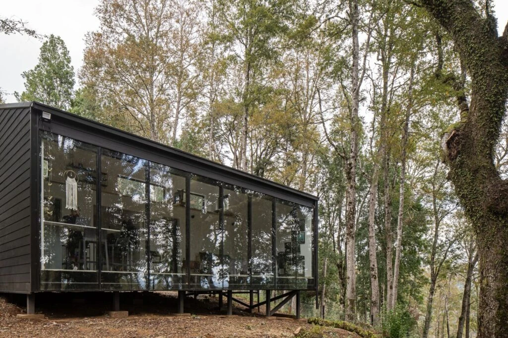 En medio de una zona de bosque en Chile se levantó esta tiny house de 45 metros cuadrados, adyacente a la casa principal del predio.