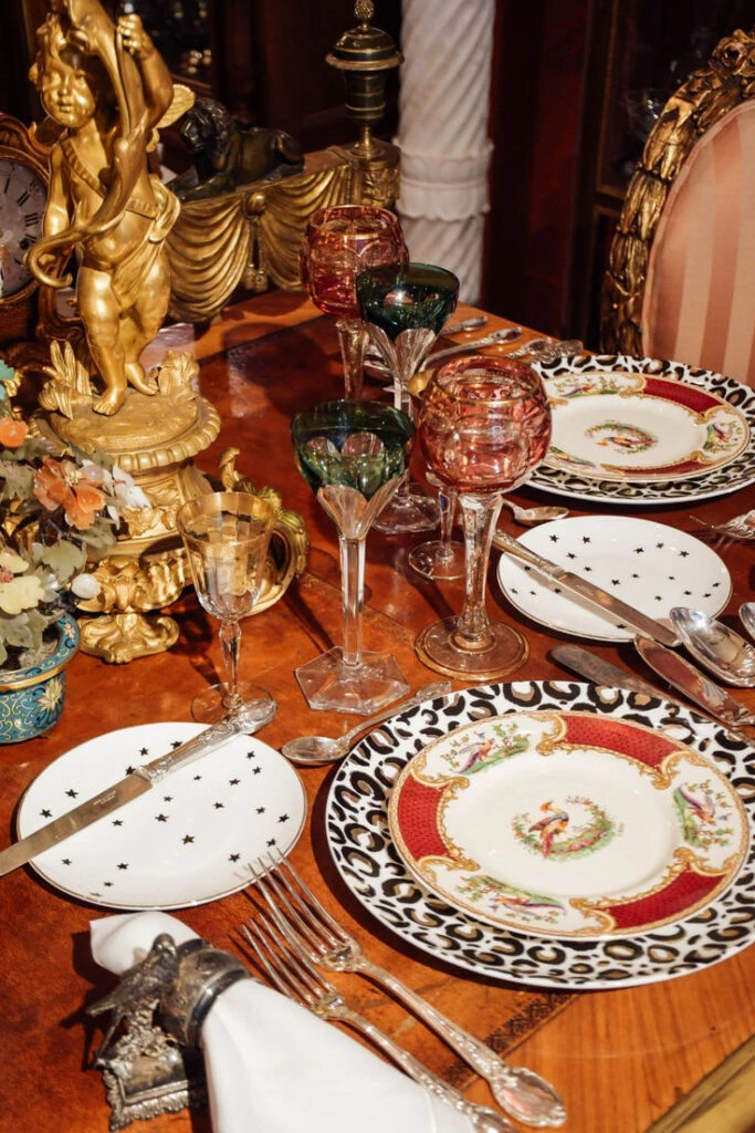 Platos pintados como obras de arte, copas de cristal con formas oníricas y arreglos florales fantásticos son solo algunos de los elementos que dominan esta estética furor.