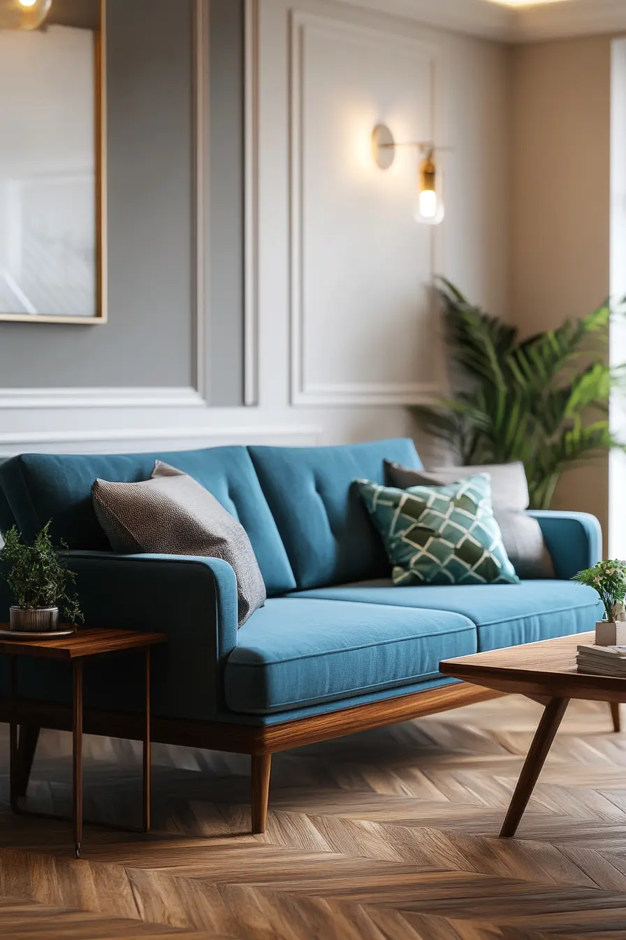 1.Pintá una pared focal en Transformative Teal y sumá muebles en tonos naturales.