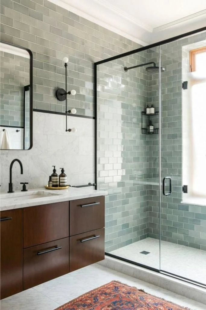 - Azulejos verde salvia pueden dar un gran golpe de efecto en baños.