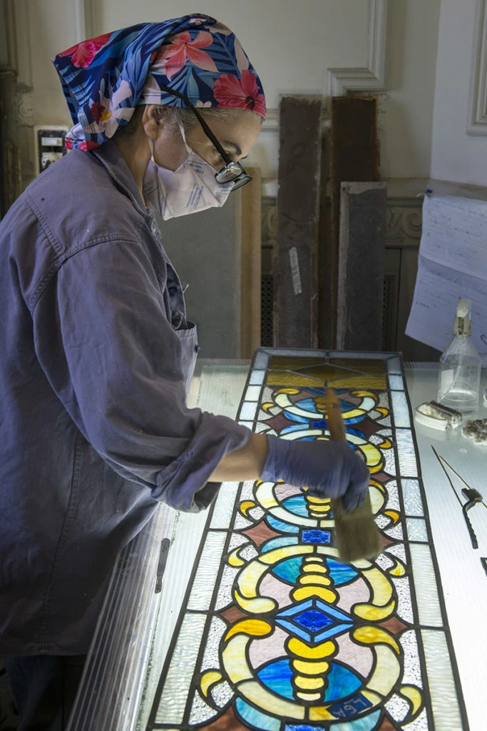 La arquitecta Nazarena Aparicio coordina un equipo de 50 especialistas en maderas, vitrales y metales, entre otros; todos dedicados a procesos de restauración edilicia.