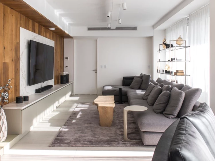 Los pisos llevan porcellanatos de 60 x 120 cm de color gris claro (@sbgsa). “La selección de los materiales y elementos se van repitiendo en los diferentes espacios con el fin de lograr una continuidad entre los ambientes”, contó la arquitecta Carina Svetlize (@svetlize_carina).