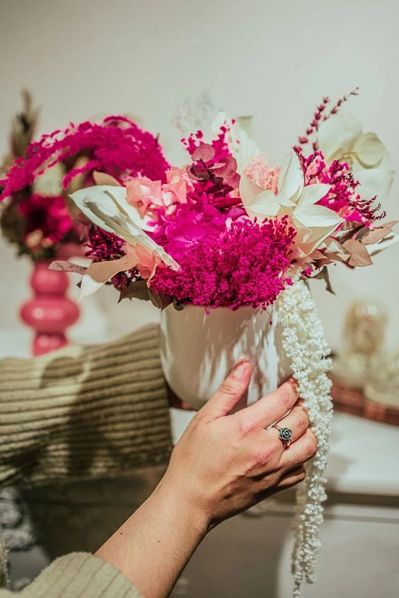Lo ideal es incorporar el Viva Magenta a través de los detalles, como puede ser una pared, una sola pieza de mobiliario o algo más sutil como cuadros, almohadones, mantas, acolchados, alfombras, velas, jarrones con flores frescas, lámparas, etc.