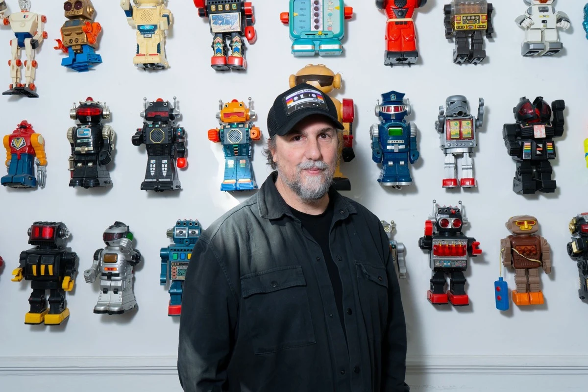 ¿Quién es ese hombre/artista parado frente a decenas de robots en la pared, de juguete, de colección, de viajes...de la vida (su padre tenía una juguetería en Constitución).