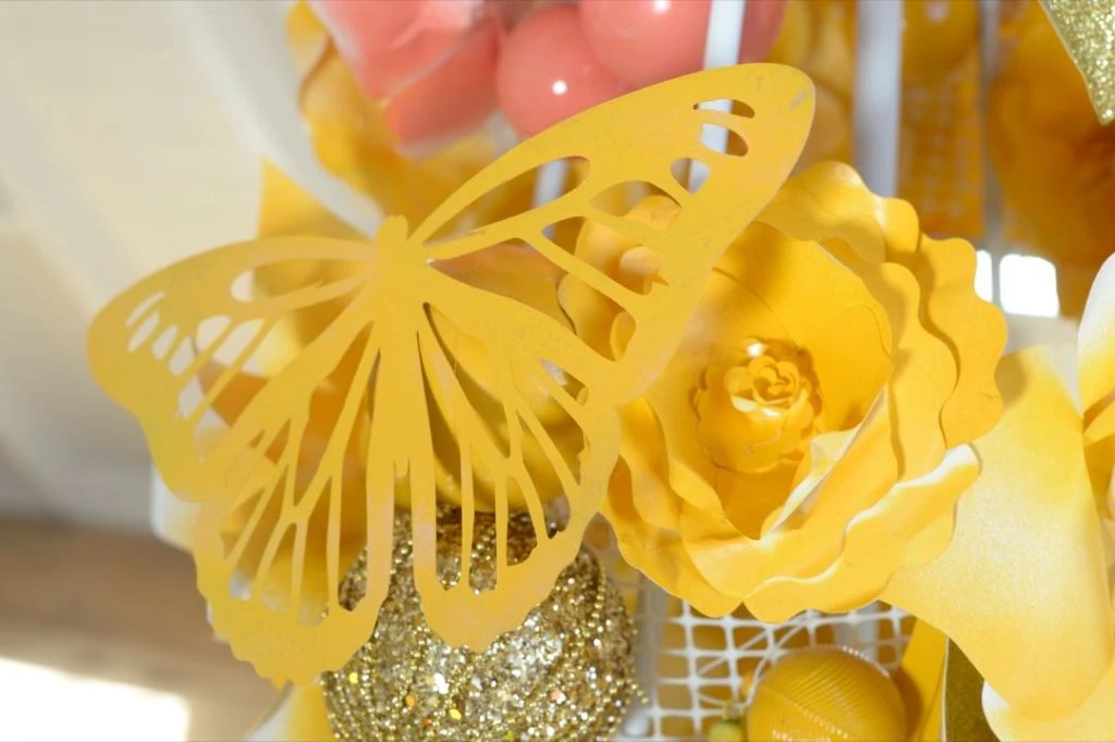 Armaron flores de papel usando papeles que tenían de excedentes de otros trabajos crafties y a los adornos los revivieron de otras navidades, con un refresh de aerosol. ¡Los dejaron divinos!