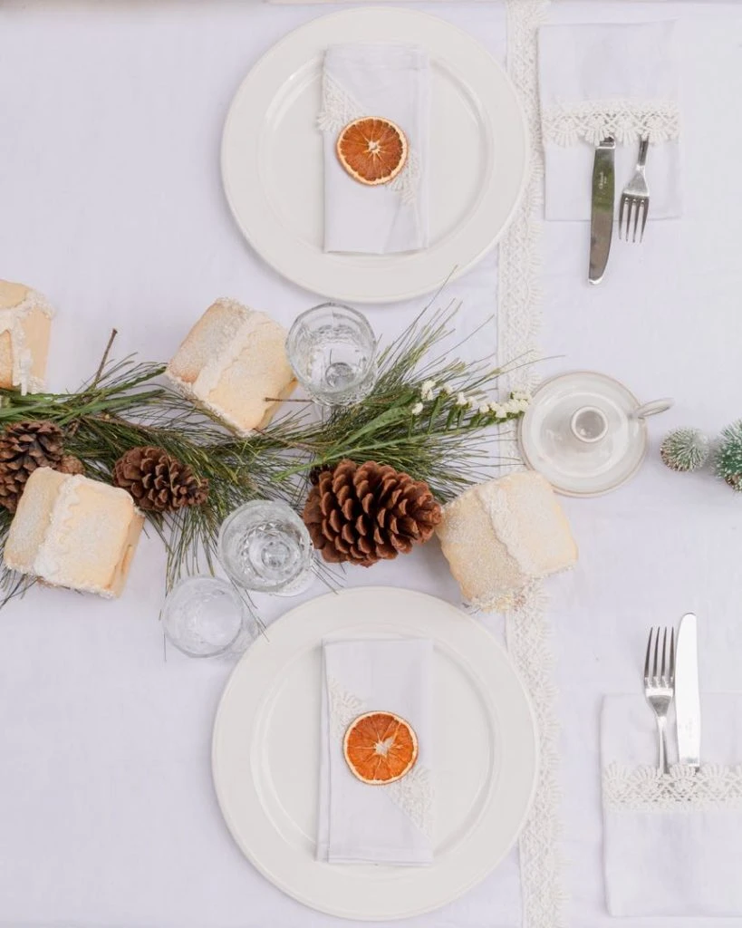 Ella cuenta que, además de usarse como detalle deco en la mesa, las naranjas deshidratadas también pueden usarse en guirnaldas o colgadas en el árbol.