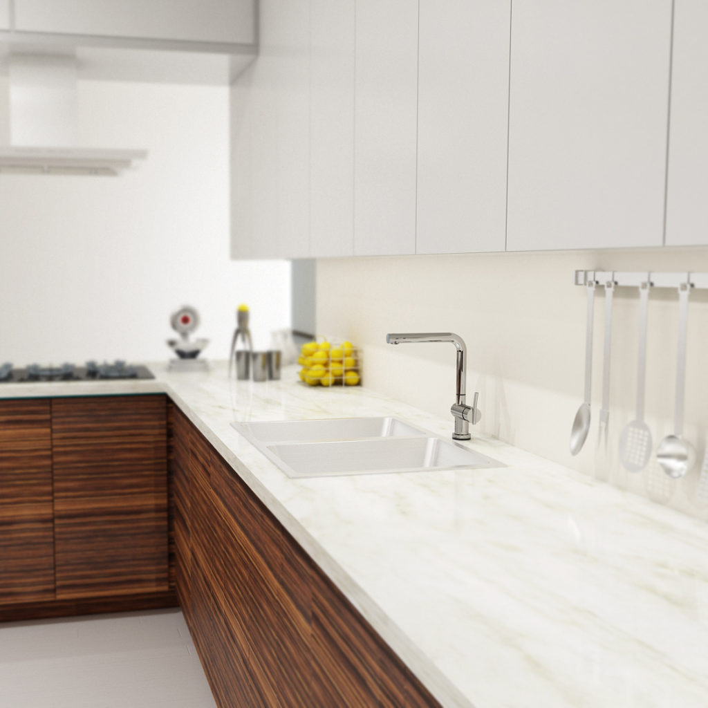 Una cosa más que nos gustó de esta opción es que la estructura del sistema de instalación se ubica por debajo de la mesada, lo que permite este tipo de rosetas súper estéticas y livianas.
