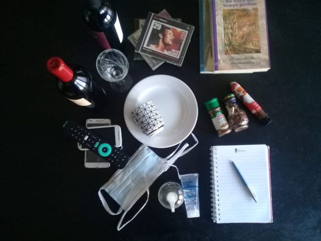 *Objetos típicos de la cuarentena: elementos de limpieza, una máscara o barbijos si salimos a la calle, etc.