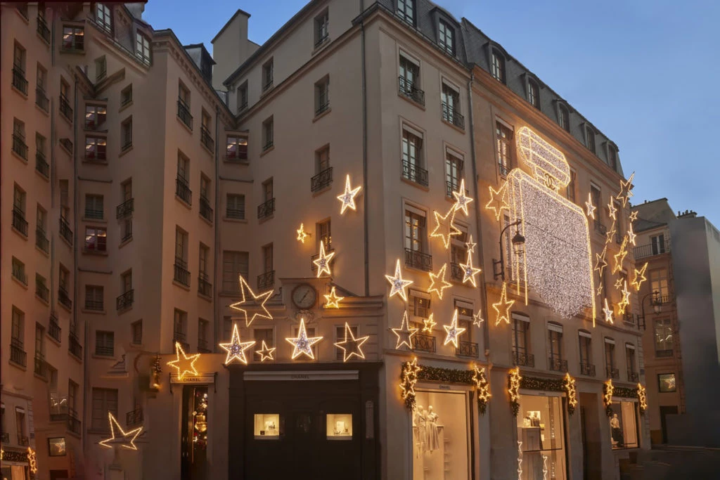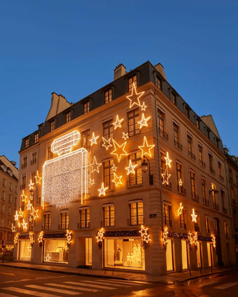 Equipado con una instalación de luces compuesta por una estructura de metal y un conjunto celestial de estrellas LED que recuerda la fascinación de Gabrielle Chanel por el cosmos y las galaxias, el edificio francés se convirtió rápidamente en uno de los más fotografiados de la zona.