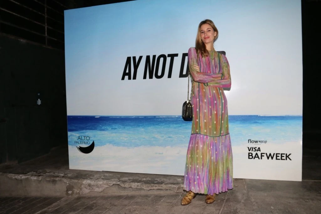 Con su sello personal, Dolores Barreiro asistió al desfile de AY Not Dead con un nuevo diseño de su propia marca Holi. De seda, largo hasta los pies y con estampa tie dye, el print que es una de las tendencias más fuertes del verano, la modelo causó sensación.
