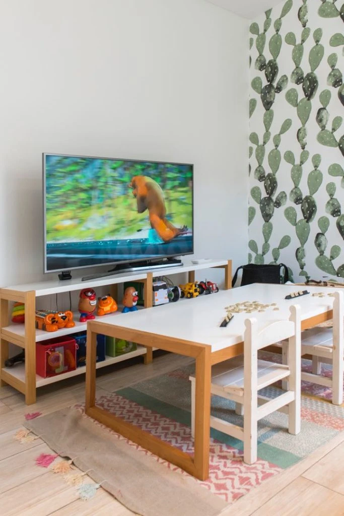 4.En los playroom o zona de juegos en la misma habitación, usar alfombras sirve tanto para decorar como para sectorizar el área funcional.