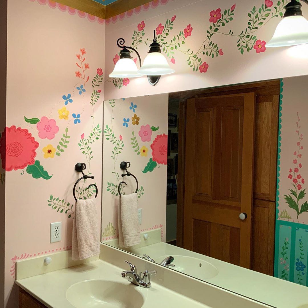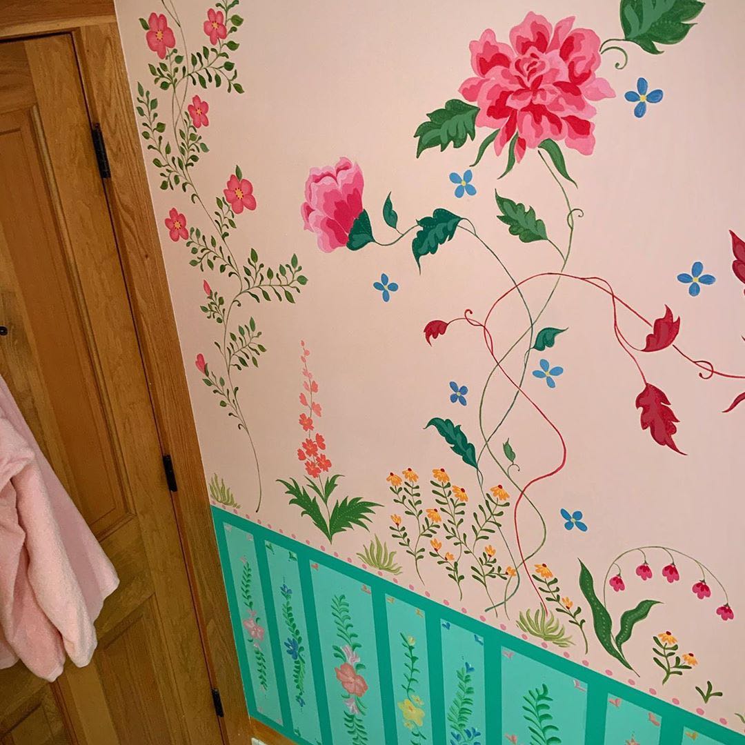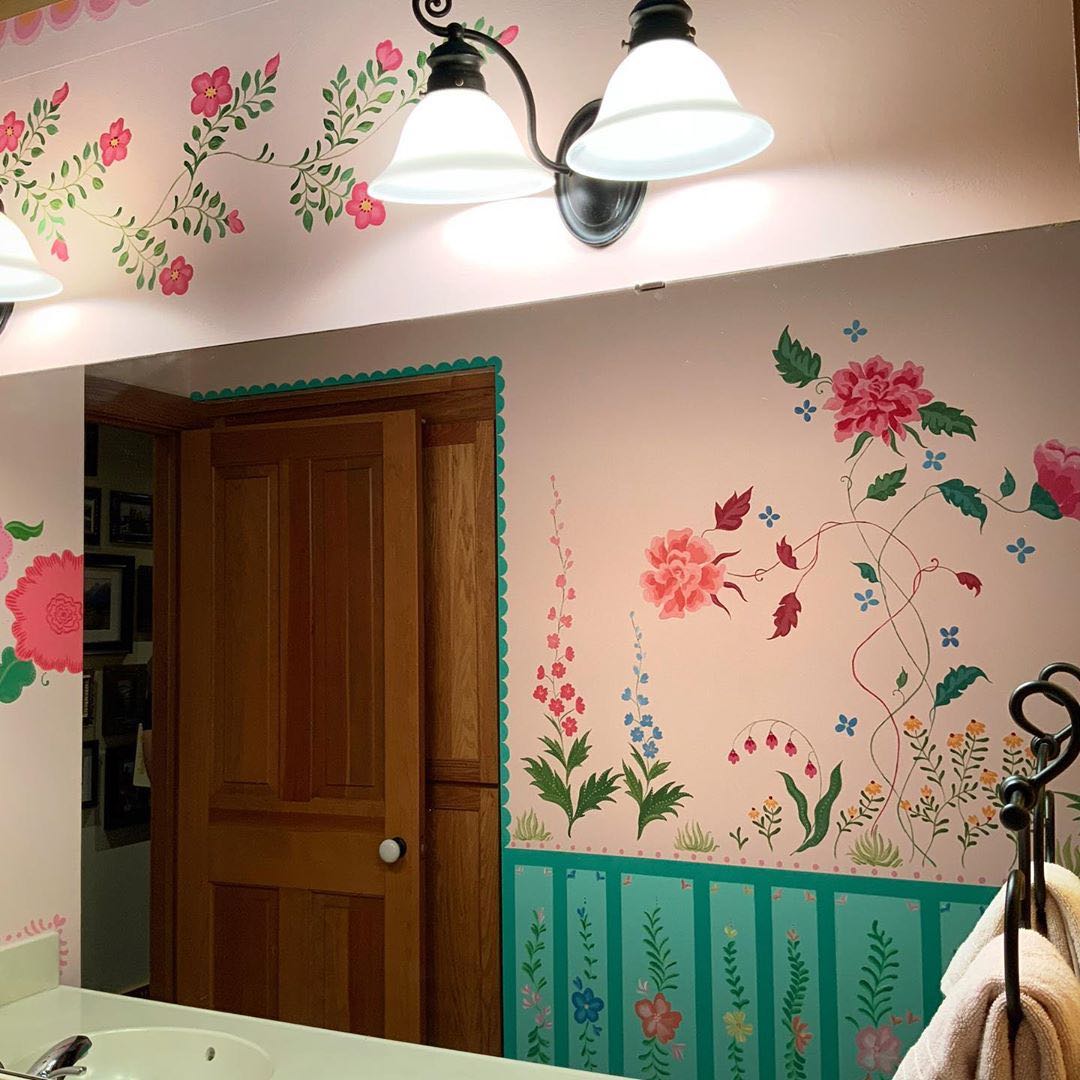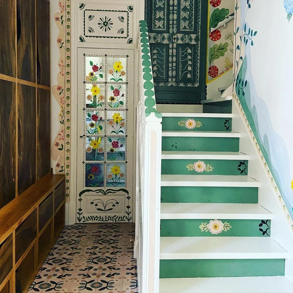 Ningún rincón de la casa quedó sin el toque artístico de Nathalie. Ella decoró las paredes, puertas y ventanas con ilustraciones botánicas.