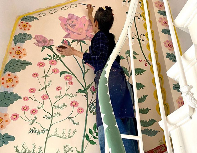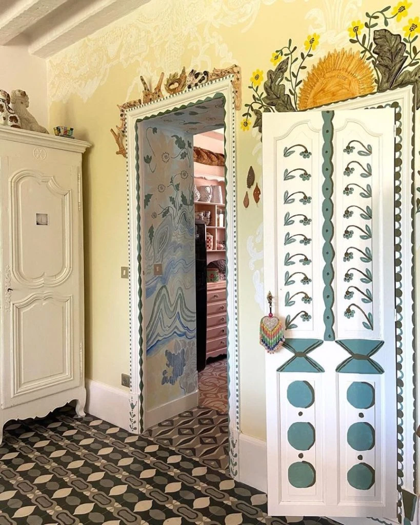 Nathalie Lété ocupó su tiempo durante el encierro por la pandemia transformando su casa de campo en el escenario de cuento. Puertas, paredes y muebles florecen en múltiples colores y convierten su casa en un bucólico oasis que parece creado por hadas.