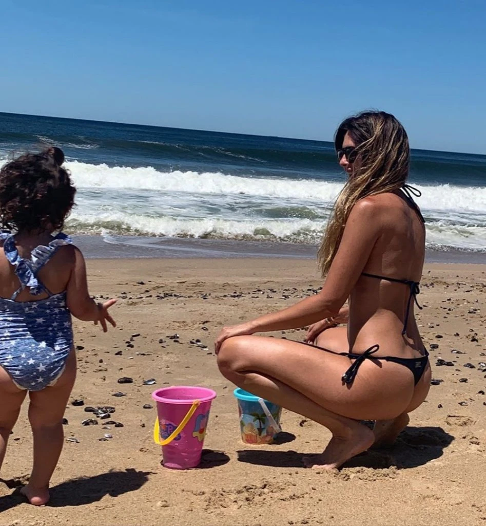 La actriz disfruta de unas vacaciones junto a su marido y su hija en la playa. Subió fotos en bikini e impactó por su lomazo.