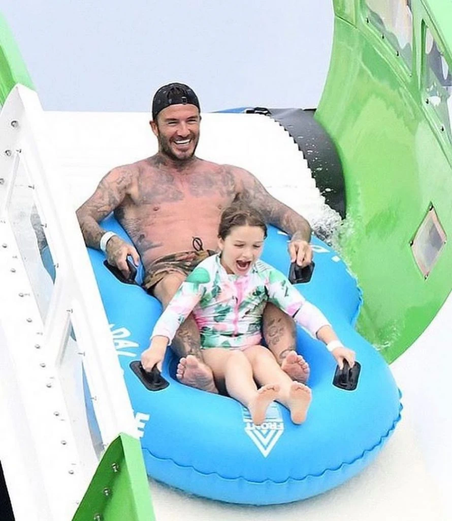 Primero fue Miami. Los Beckahm postearon imágenes en sus cuentas personales mostrando lo bien que lo estaban pasando en un parque acuático y en la playa.