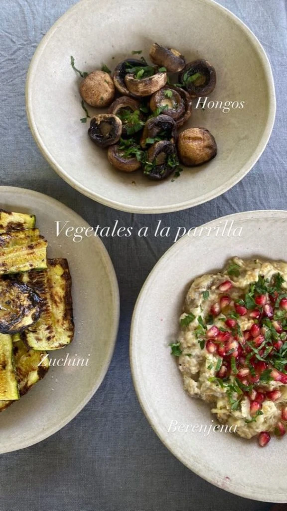 Luego, subió otra imagen con vegetales a la parrilla: zucchini, hongos condimentados con hierbas y berenjenas con granos de granada y hierbas.