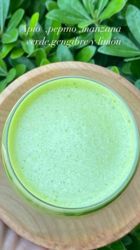 Juliana Awada, una vez más, compartió imágenes de su mesa de domingo. En este caso, primero brindó los ingredientes de su jugo verde: apio, pepino, manzana verde, gengibre y limón. Una preparación simple, con nutrientes y vitaminas para acompañar cualquier comida del día.