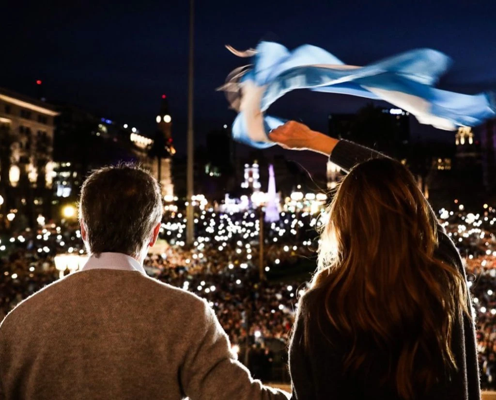 Sencilla y en su rol de compañera, Juliana acompaño al presidente en su breve aparición en el balcón de la casa Rosada. Desde las 17 horas en la Plaza de Mayo y distintos puntos del país la gente convocada principalmente por Luis Brandoni y Juan José Campanella entre otros referentes, empezó a llegar.