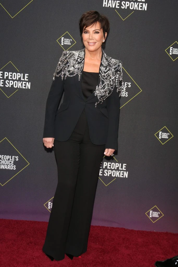 Kris Jenner, la más recatada del clan, llevó un traje joya de saco y pantalón de Alexander McQueen. El saco se destacó por tener cristales bordados sobre sus hombros.