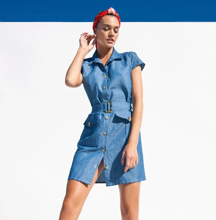 - Vestido camisero: es la prenda it de esta temporada. Es un mini dress, tiene botones en el frente y lazo para marcar la cintura. Ideal para los días más calurosos.