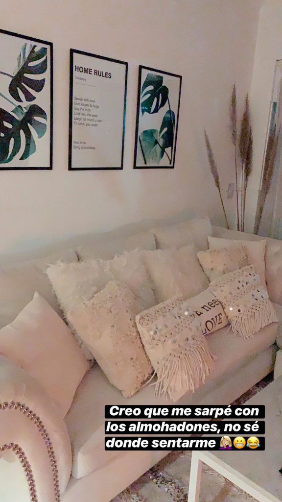 La modelo decoró el sillón con muchos almohadones al tono, que luego ella misma bromeó sobre que había incurrido en cierto exceso.