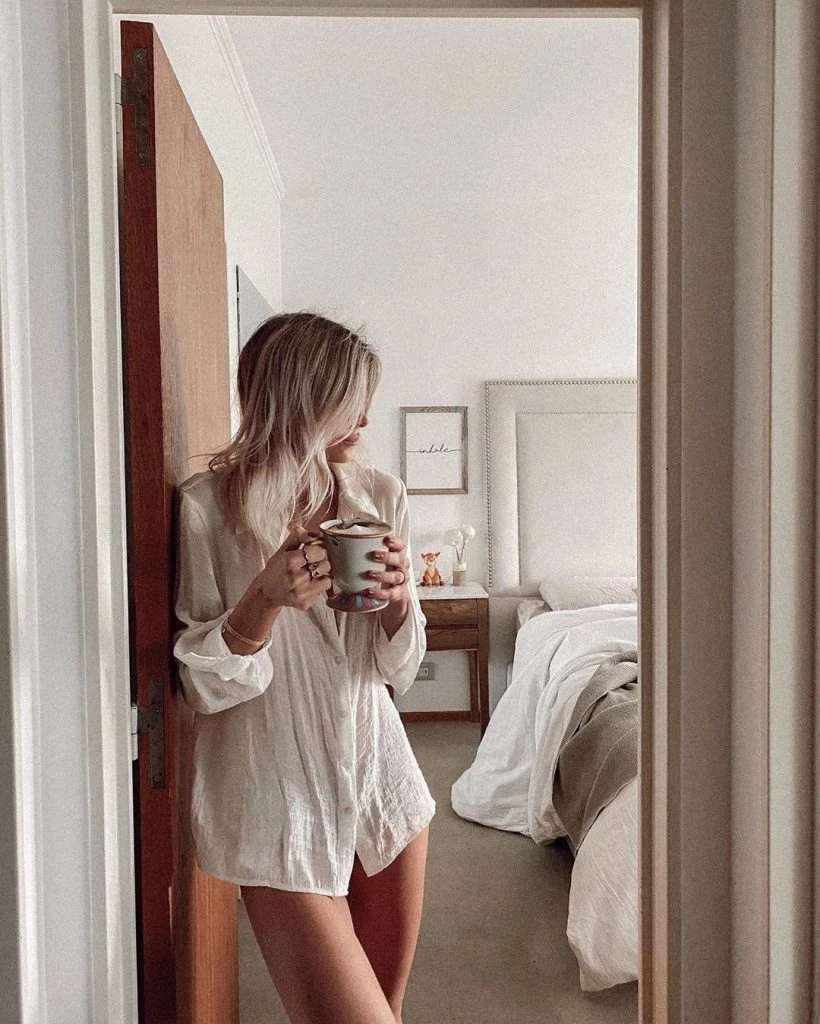 Colores neutros y cierto "minimalismo flexibilizado" sería una buena manera de detallar la impronta de decoración que impuso la modelo.