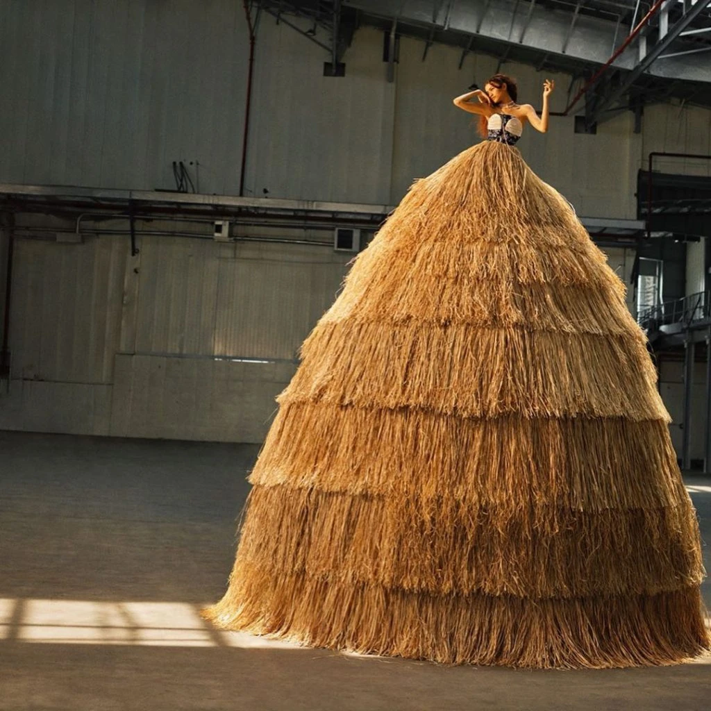 Además la puesta en escena tuvo por finalidad empoderar a la mujer afroamericana. Las fotos de inmediato se viralizaron en Internet. Este impresionante “vestido de paja” midió más de dos metros de altura y se montó en el The Studio Museum en Harlem.