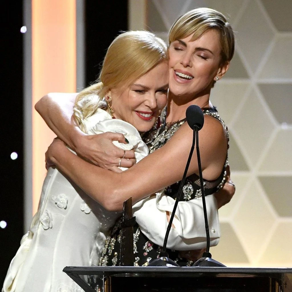 Entonces, Charlize subió al escenario y antes de fundirse en un cálido abrazo con Nicole le advirtió bromeando: "Solo he comenzado".