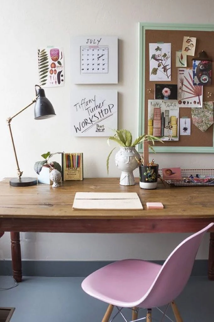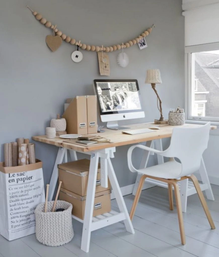 Si el espacio mantiene una línea cromática (se usan los mismos colores) eso ayudará a tu concentración. Elegí tres tonos que combinen y armá tu espacio con esas tonalidades.