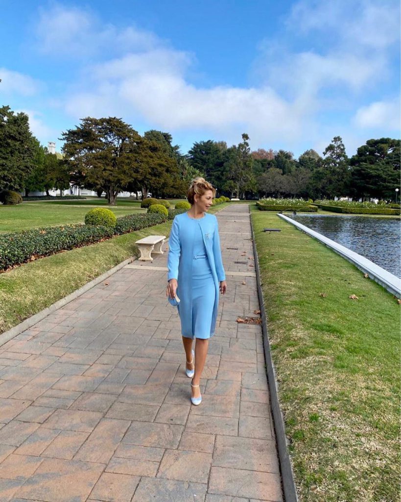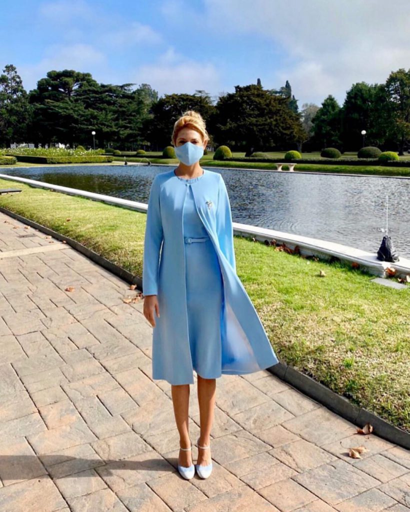 Los últimos dos looks de la Primera Dama llamaron la atención porque llevó vestido y barbijo del mismo tono. Un recurso de estilismo que impuso Zuzana Caputova, presidenta y jefa de Estado de Eslovaquia.