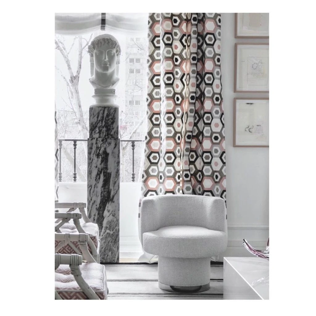 Sus señas particulares: sofisticado, contemporáneo y de afición artística. Sus espacios eclécticos siempre ofrecen un guiño clásico y una apuesta al orden basada en la sobriedad y suavidad de su paleta de colores, y en las composición del mobiliario y piezas que emplea y combina con sensatez y sensibilidad.