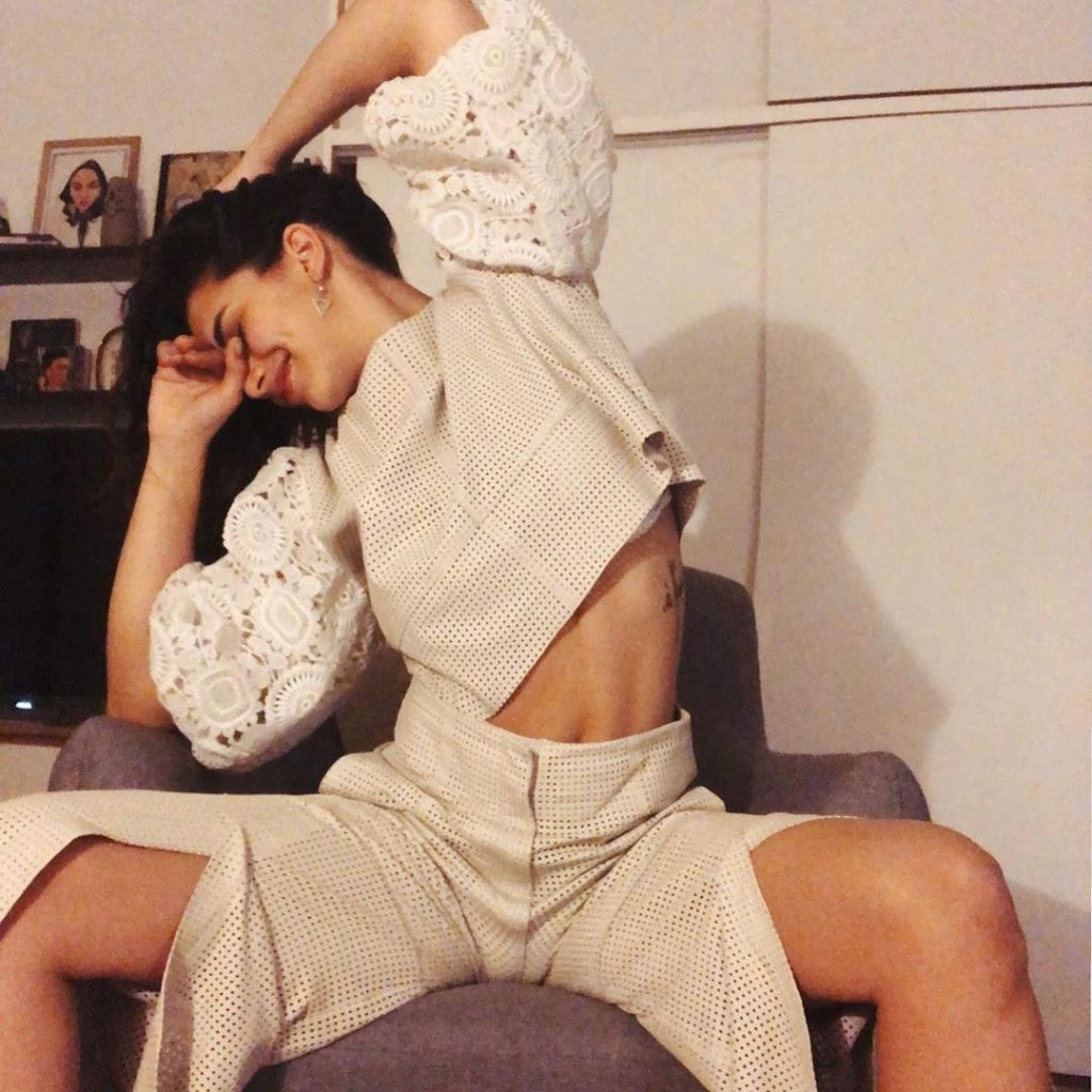 El mono es otro de los ítems del verano 2020. En gris y también de María Paez, Thelma lo combinó con las clásicas Adilette.