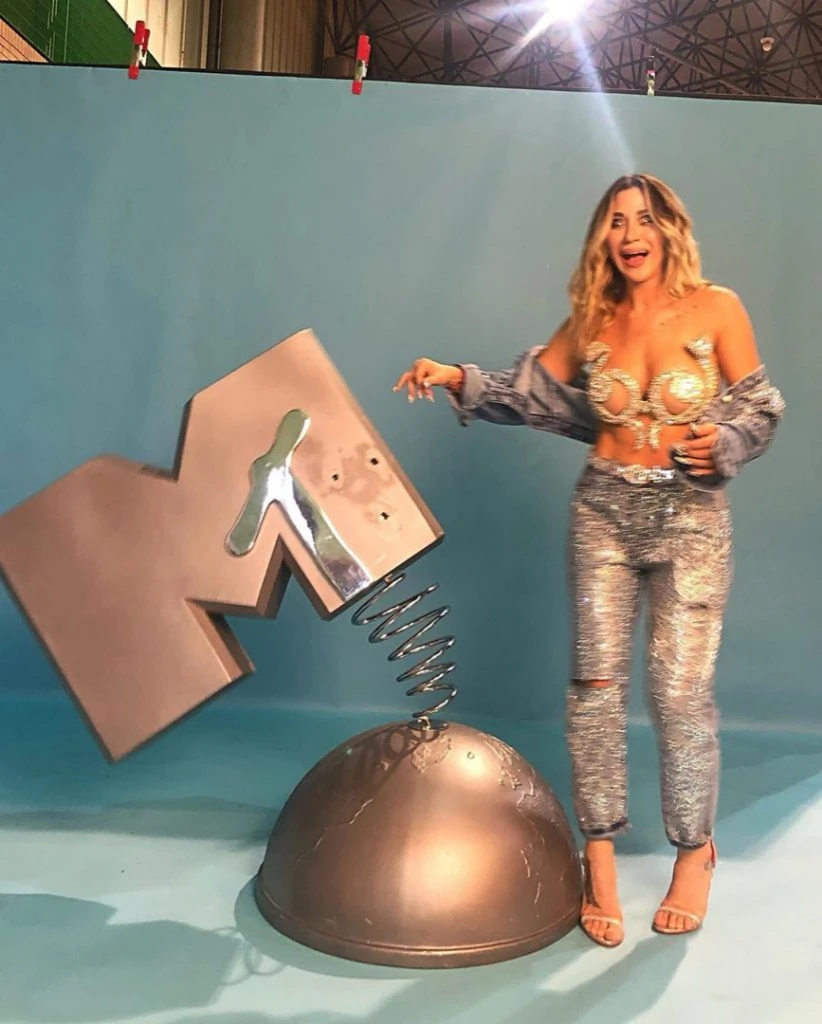 En la red carpet de los MTV EMA Awards, Barón se destacó con un look a puro brillo. Ella misma lo llamó "mi look cobra BLING ?"