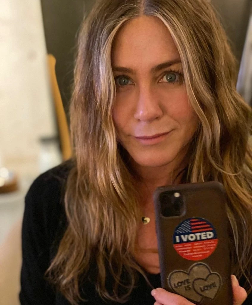 Estados Unidos se encuentra en la recta final por las elecciones presidenciales 2020. La protagonista de The Morning Show realizó un posteo con una foto emitiendo su voto en las calles de California y una con el característico sticker "yo voté" que decidió pegar detrás de su celular.