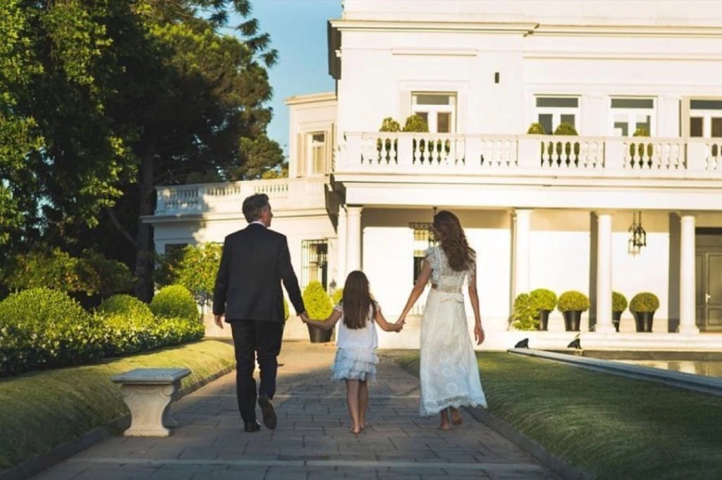Las imagen es bucólica. Mauricio Macri, Antonia y Juliana Awada tomados de la mano y de espaldas caminando hacia la residencia presidencial. Él, vestido de traje. Ellas, de blanco y descalzas.