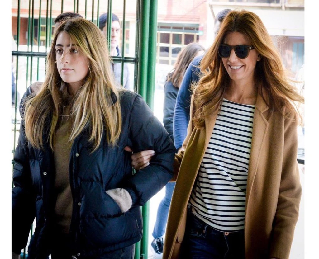 Este año llegó del brazo de su hija Valentina Barbier, que debuta como votante. Su hija llevo un look muy clásico también: jean, sweater camel y campera azul.
