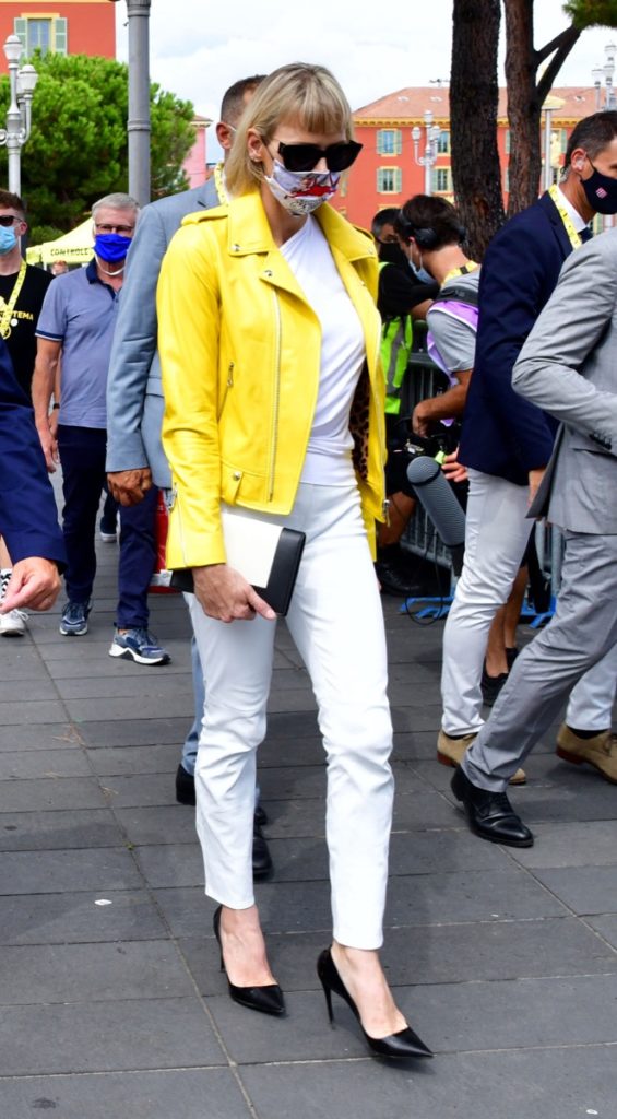 En Niza, la princesa, junto con su marido, el príncipe Alberto II, iniciaron el clásico Tour de France. Y llamó la atención por su su look cancherísimo que acompañó con un original barbijo.