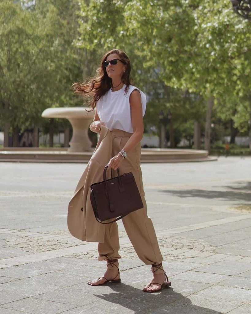 La remera lisa con hombreras es el nuevo básico. Pero para que quede bien hay un secreto: se combina con pantalón de cintura alta y amplio, estilo paper bag. Mirá...