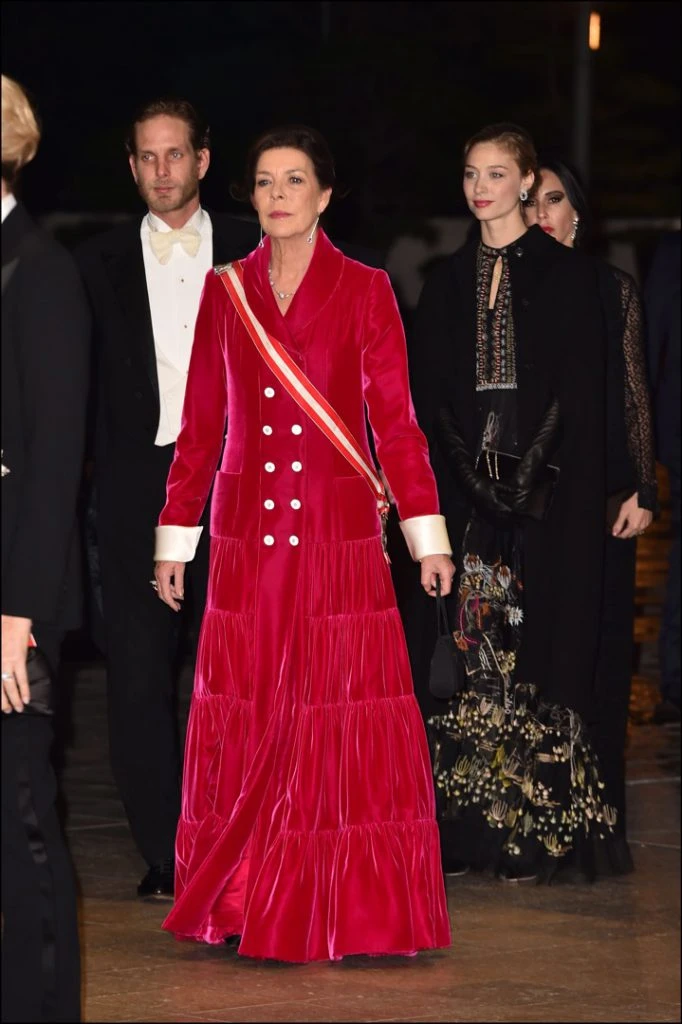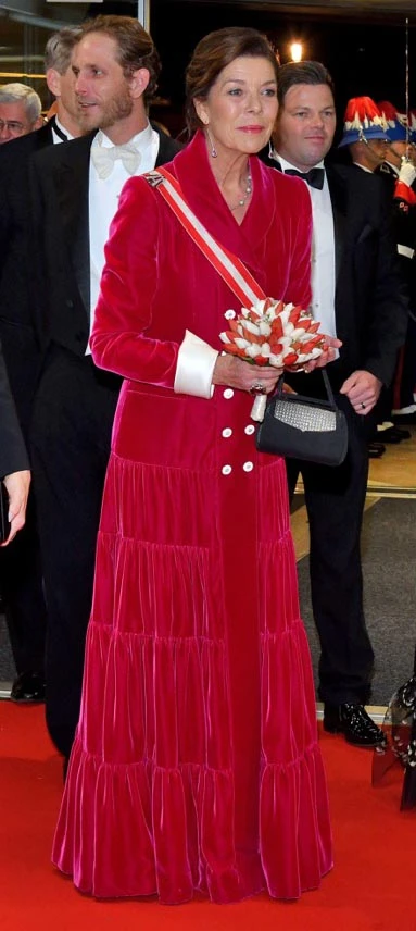 Hubo celebración militar y religiosa durante el día y por la noche una gala y concierto de ópera. Y esta vez fue Carolina de Mónaco quien se destacó con un diseño especial. Eligió un sofisticado vestido de terciopelo en rojo de la colección de Otoño Alta Costura de Chanel, su marca preferida.