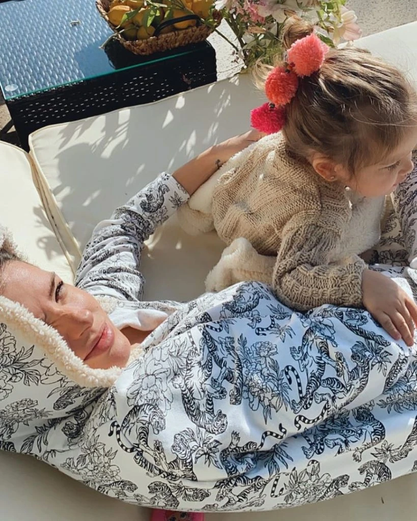 "Mamá haceme el avión", le pide Magnolia a la China. Se nota que están haciendo fiaca en la cama y la actriz con un broche para el pelo improvisa un avión para su hija