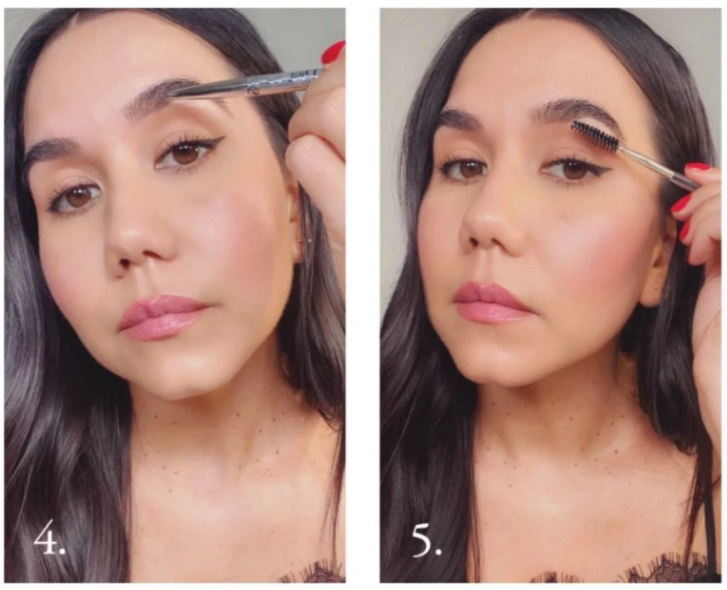 - Paso 5: Con el mismo pincel del paso 1, cepillá las cejas hacia arriba nuevamente para mezclar los trazos de lápiz.