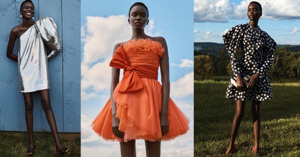 Vestidos largos y cortos con mucho volúmen evocan vitalidad, algarabía y movimiento.